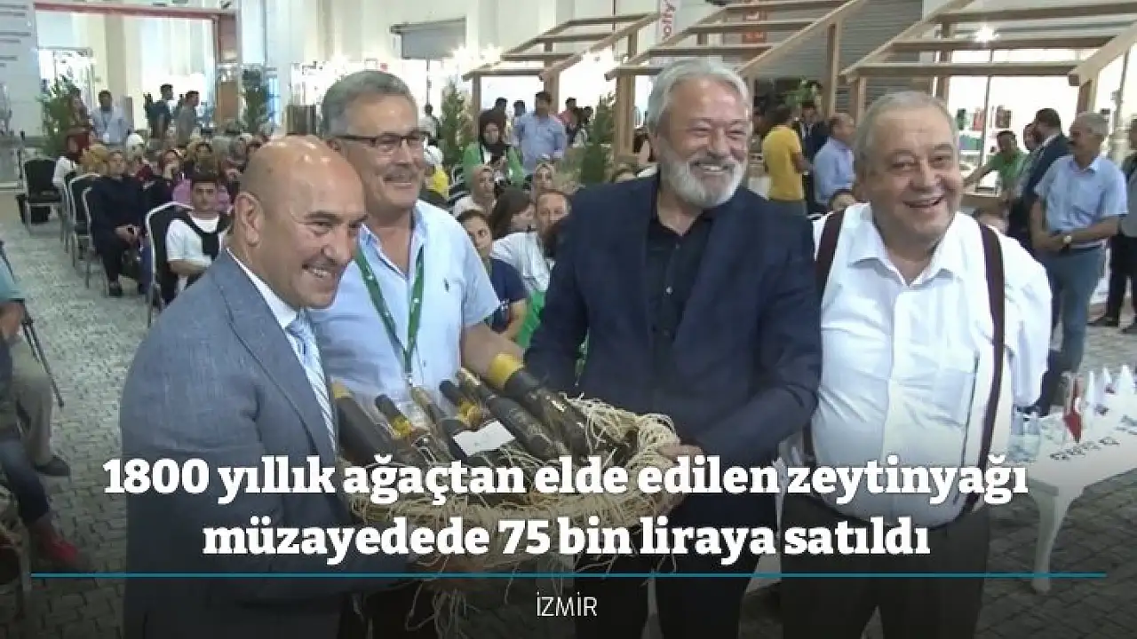 Başkan Soyer de, müzayedeye katılarak zeytinyağı aldı. Bin 800 yıllık Umay Nine isimli zeytin ağacından elde edilen zeytinyağı ise 75 bin liraya alıcı buldu.