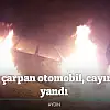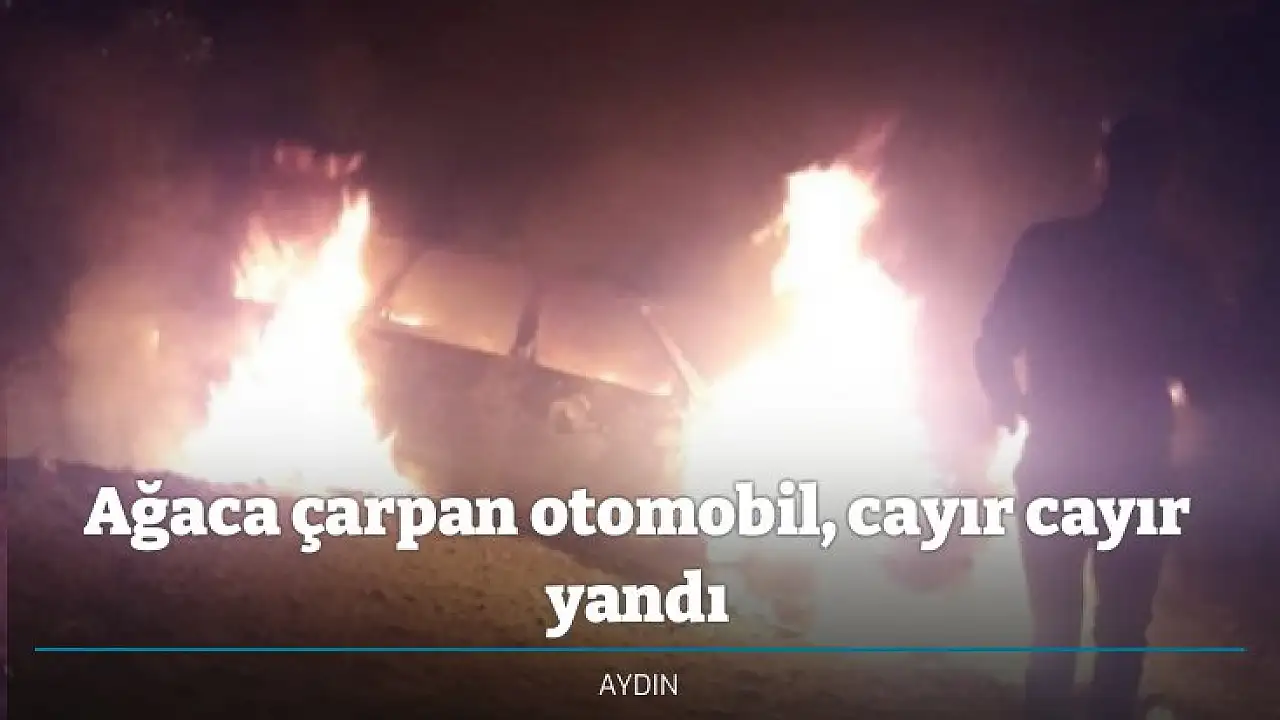 Aydın'ın Efeler ilçesinde kontrolden çıkarak ağaca çarpan otomobil, bir anda alev alarak cayır cayır yandı.