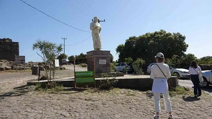 Assos Antik Kenti girişine 2009 yılında Kültür ve Turizm Bakanlığı tarafından konulan Aristo heykeli zaman içerisinde tahribata uğradı. Birçok kez tamir edilen heykelin yerine Behramkale köyü muhtarlığı tarafından yenisi yaptırılarak yerine yerleştirildi. Mevcut heykelin ise yeniden tamirlenip, köyün farklı bir noktasına yerleştirileceğini ifade eden Behramkale Muhtarı Numan Türkay, 'Mevcut heykelimizi köyün farklı bir noktasında değerlendireceğiz. Yeni heykel ise mevcut yerine yerleştirildi. Emeği geçenlere teşekkür ederim' dedi.