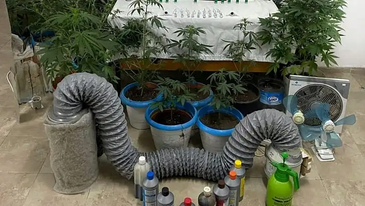 Balıkesir'in Ayvalık ilçesinde jandarmanın bir eve düzenlediği operasyonda esrar, kenevir bitkisi ve kenevir yetiştirmede kullanılan malzemeler ele geçirildi.