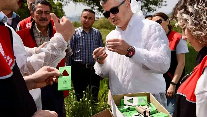 Balıkesir'de hububatta biyolojik süne mücadelesi başladı. Binlerce süne düşmanı doğa dostu faydalı böcek hububat alanlarına bırakıldı.