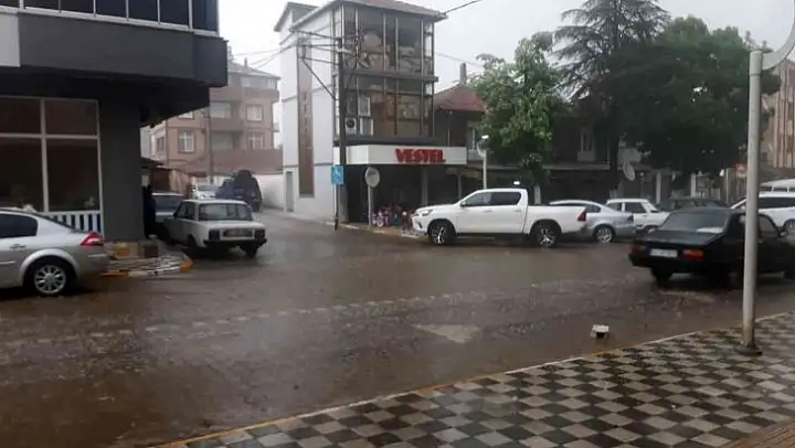 Çanakkale'nin Yenice ilçesine bağlı Kalkım beldesinde başlayan sağanak yağmurun ardından, nohut büyüklüğünde dolu yağdı.