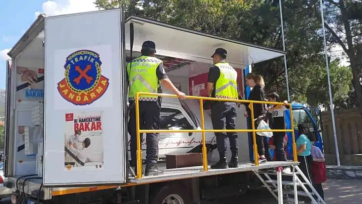 Denizli'nin Tavas ilçesinde jandarma tarafından emniyet kemeri simülasyon aracı ile uygulamalı eğitim verildi. Araca binen öğrenciler, emniyet kemerinin ne kadar önemli olduğunu anladıklarını ifade ettiler.