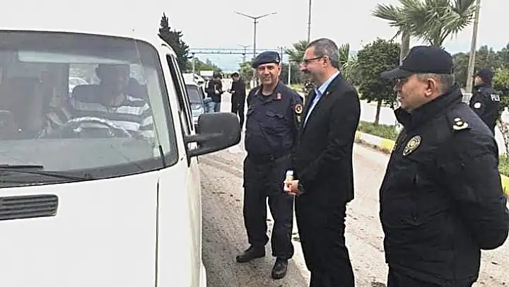Balıkesir'in Havran Kaymakamı Enver Özderin, emniyet ve jandarma ekipleri tarafından yapılan trafik denetimine katılarak sürücülerin bayramını tebrik etti, sürücülerden trafik kurallarına uymalarını istedi.