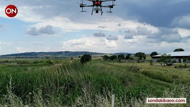 Manyas'ta drone ile sivrisineklere karşı zirai ilaçlama