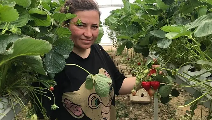 Eşi ile birlikte yoğun ve yorucu bir dönem geçirdiklerini belirten elektronik mühendisi Hakan Sezmiş ise'İşletmemizde otomatik sistem sulama yapıyoruz. Şu anda altı buçuk dönüm kapalı seramızda yüz on bin fidemizden, fide başına yaklaşık beş yüz gram çilek yetiştiriyoruz. Biz burada topraksız üretim yaparken kullandığımız tarım ilaçlarının çilek üretimine uygunluğuna bakarak kullanıyoruz. Lisanslı fide kullanıyoruz. Raf sisteminde tek sıra raf üzerine kurduk. Daha fazla güneş ışığından faydalanmasını sağladık. Üretimden çok memnunuz' diye konuştu.