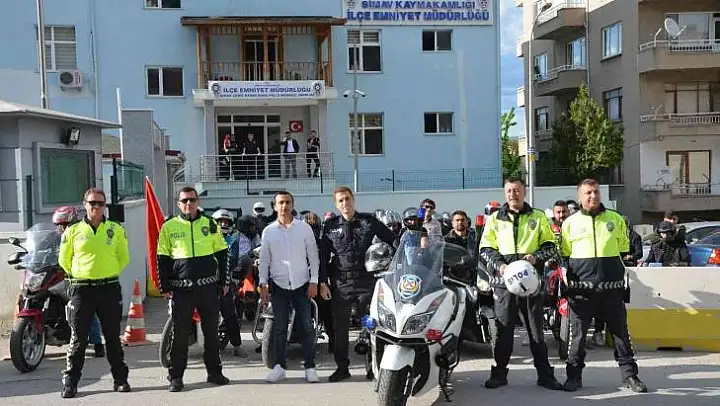 Kütahya'nın Simav ilçesinde motosiklet tutkunları İlçe Emniyet Müdürlüğü Trafik Büro Amirliği ekipleri tarafından 'Kaskımızı takıyoruz, kurallara uyuyoruz' ve 'Araçlar bizi fark etsin' sloganıyla düzenlenen korteje farklı model ve markalardaki motosikletleriyle katıldı.