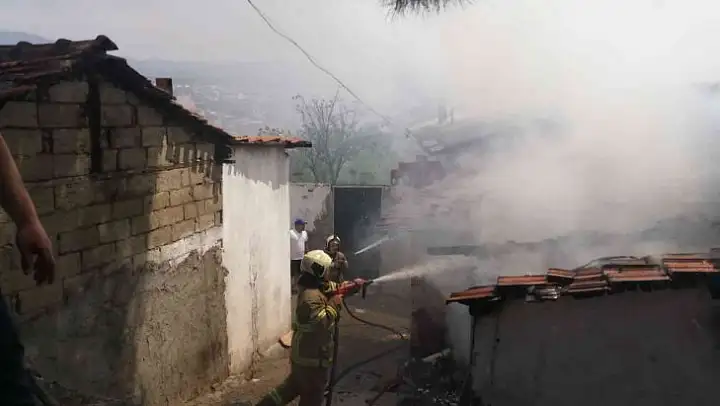 Balıkesir'in Edremit ilçesinde bir kagir binada çıkan yangın kısa sürede büyüdü. Yangında evinde mahsur kalan bir engelli vatandaş itfaiye tarafından kurtarıldı