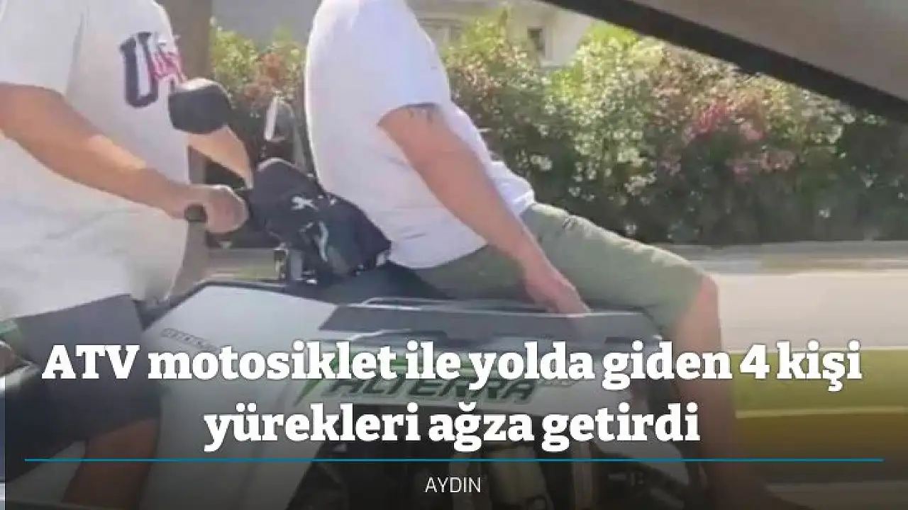 Aydın'ın Kuşadası ilçesinde ATV motosiklet ile yolda giden 4 kişi yürekleri ağza getirdi.