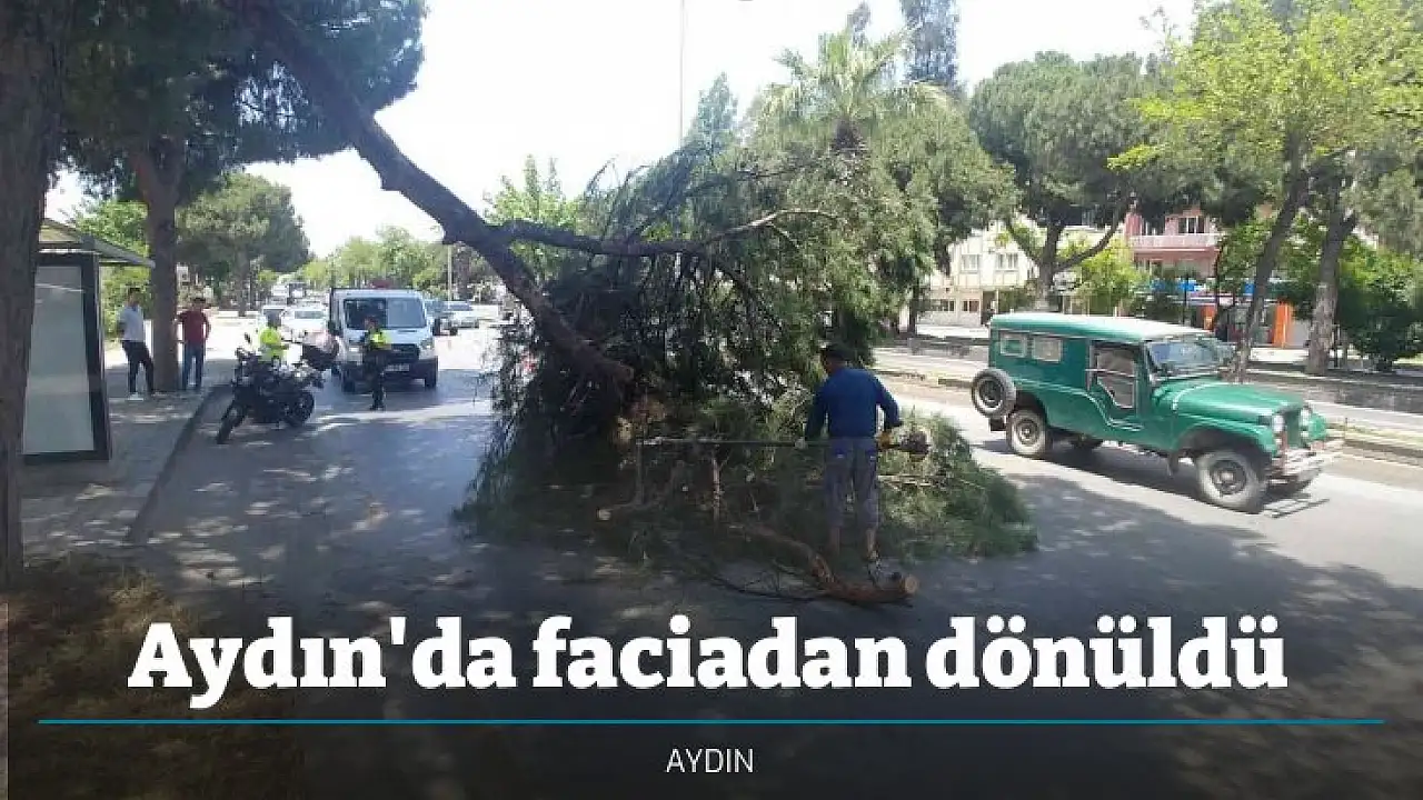Aydın'ın Efeler ilçesinde trafik akışının en yoğun olduğu yerlerden biri olan İzmir Bulvarı üzerinde bir ağacın kırılan dalı yola devrilirken, olay anında yoldan geçen aracın olmaması facianın önüne geçti.