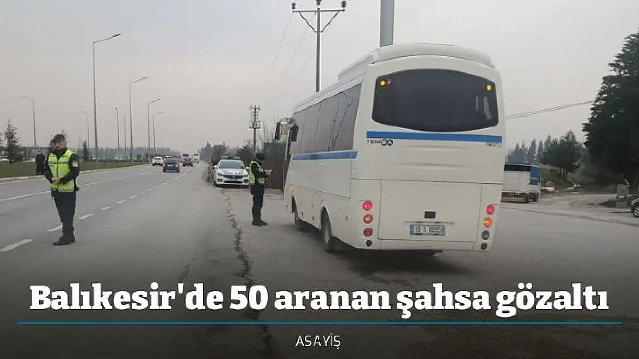Balıkesir'de polis ve jandarma ekiplerinin aranan şahıslara yönelik 2 ayrı operasyonunda çeşitli suçlardan aranan 50 şahıs gözaltına alınırken, adli makamlara sevk edilen 8 şahıs tutuklandı.