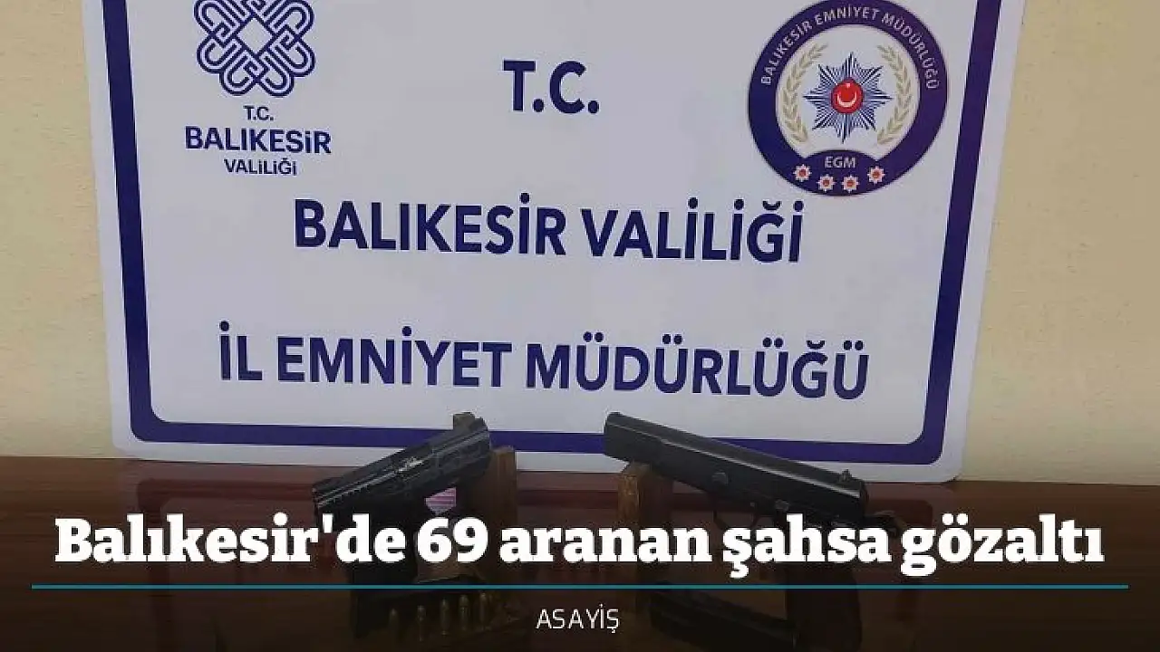 Balıkesir'de polis ve jandarma ekiplerinin il genelinde yaptıkları asayiş uygulamalarında çeşitli suçlardan aranan 69 şahıs gözaltına alınırken, adli makamlara sevk edilen 19 şahıs tutuklandı.