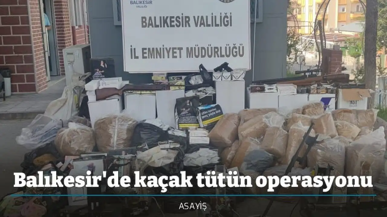 Balıkesir Kaçakçılık ve Organize Suçlarla Mücadele Şubesi (KOM) Şube Müdürlüğü görevlilerince Tütün ve Tütün Mamulleri Kaçakçılığının önlenmesine yönelik yapılan çalışmalar neticesinde, bir adreste yapılan operasyonda 343,5 kg kıyılmış tütün, 90 bin 900 adet boş makaron, 101 bin 160 adet dolu makaron, 64 kilo 750 gram nargile tütünü, 3 adet elektrikli sigara sarma makinesi, 1 adet 9 mm tabanca, 3 adet mermi, 1 adet altın arama dedektörü, 2 adet havalı tüfek ele geçirildi. Yapılan operasyonda 6 şüpheli şahsa adli ve idari yaptırım cezası uygulandı.