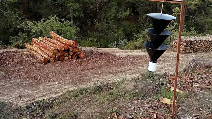 Orman alanında bulunan ağaçların hayatiyeti açısından son derece tehlikeli olan kabuk böceklerine karşıda feromon tuzakları asılarak biyoteknik mücadele yapılıyor. Özellikle hava sıcaklıklarının artmasıyla faaliyetleri çoğalan kabuk böceklerinin ormanlara sirayetinin önlenmesi amacıyla üretimin devam ettiği bölmelerde bu çalışmalar titizlikle yürütüldüğü açıklandı.