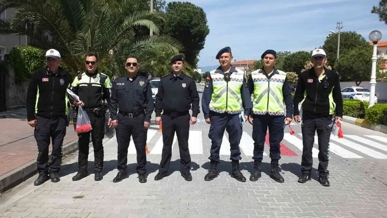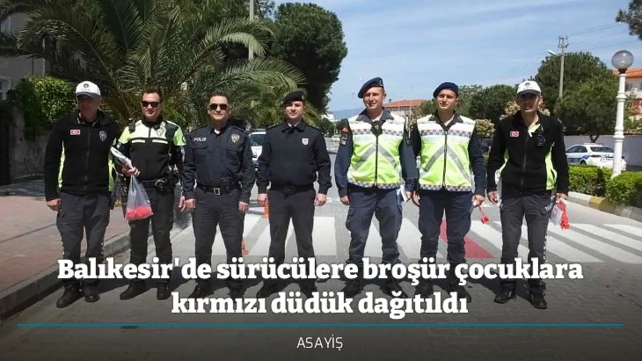 Balıkesir'de sürücülere broşür çocuklara kırmızı düdük dağıtıldı