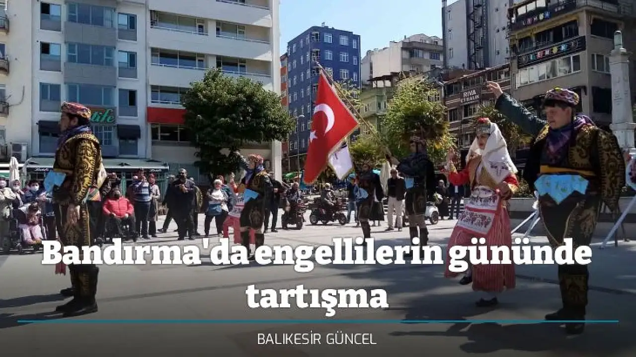 Bandırma Cumhuriyet Meydanında Engelliler Haftası kutlaması için protokol mensupları, engelli dernekleri ve STK’lar yerini aldı. Çelenklerin Atatürk Anıtı’na sunulup İstiklal Marşı’nın okunmasının ardından İlçe Sosyal Hizmetler Müdürü Neziha Solak günün anlam ve önemini belirten konuşma yaptı. Konuşmanın ardından Belediye Başkan Vekili Fatma Sibel Salı ve engelli dernekleri başkanlarının konuşmaları yapılmadan ve özel çocuklardan oluşan halk oyunları ekibi gösterilerini yapamadan tören sona erdirildi. Yaşanan bu olaya tepki gösteren Bandırma Engelli ve Engelli Aileleri Derneği Başkanı Hüseyin Uçar, "Daha 10 dakika önce Müdürümüz tamam dedi bize. Burada dernek başkanları konuşacak dedi. Burada emek veren çocuklarımız burada bekliyor. 10 yıldır çocukların emeklerini, mücadelelerini sergilemek istiyorlar. Programı bitiriyorlar. Protesto ediyor ve burada oynamıyoruz" dedi.