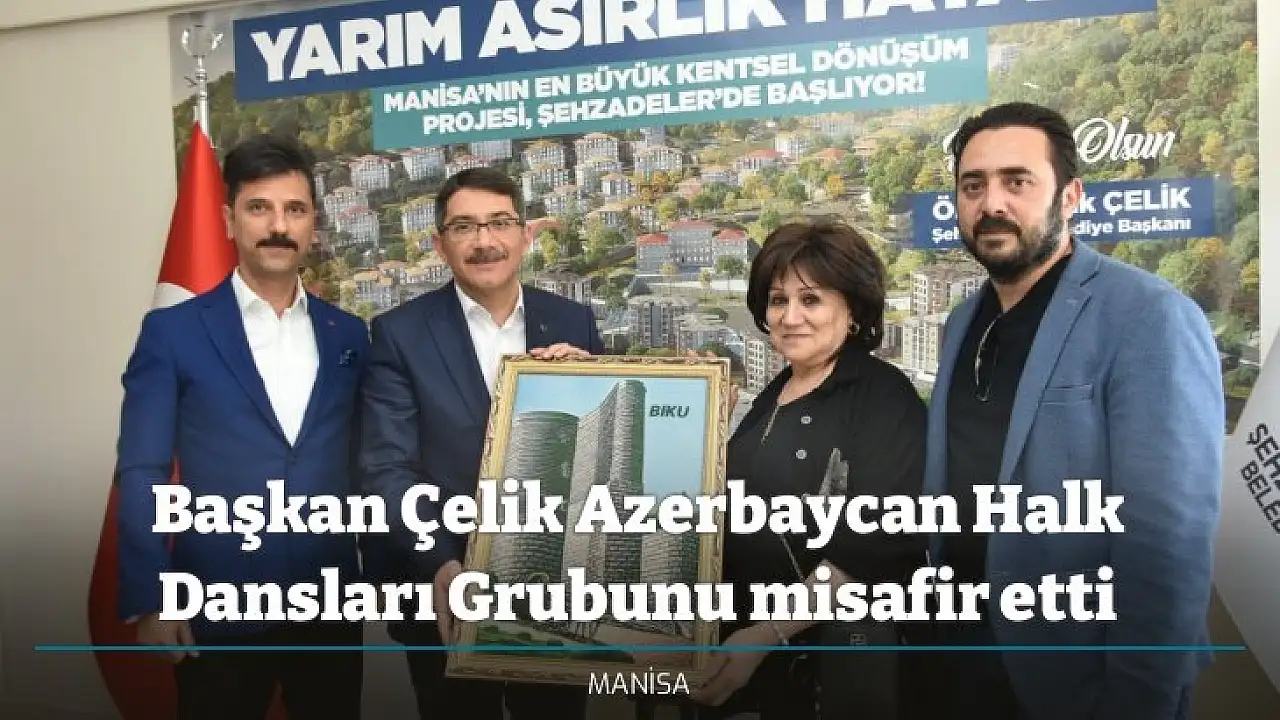Şehzadeler Belediye Başkanı Ömer Faruk Çelik, Şehzadeler Belediyesi'nin hafta sonu düzenleyeceği Çocuk Şenliklerine katılmak üzere Manisa'ya gelen kardeş ülke Azerbaycan'ın Aysel Halk Dansları Grubu üyelerini misafir etti.
