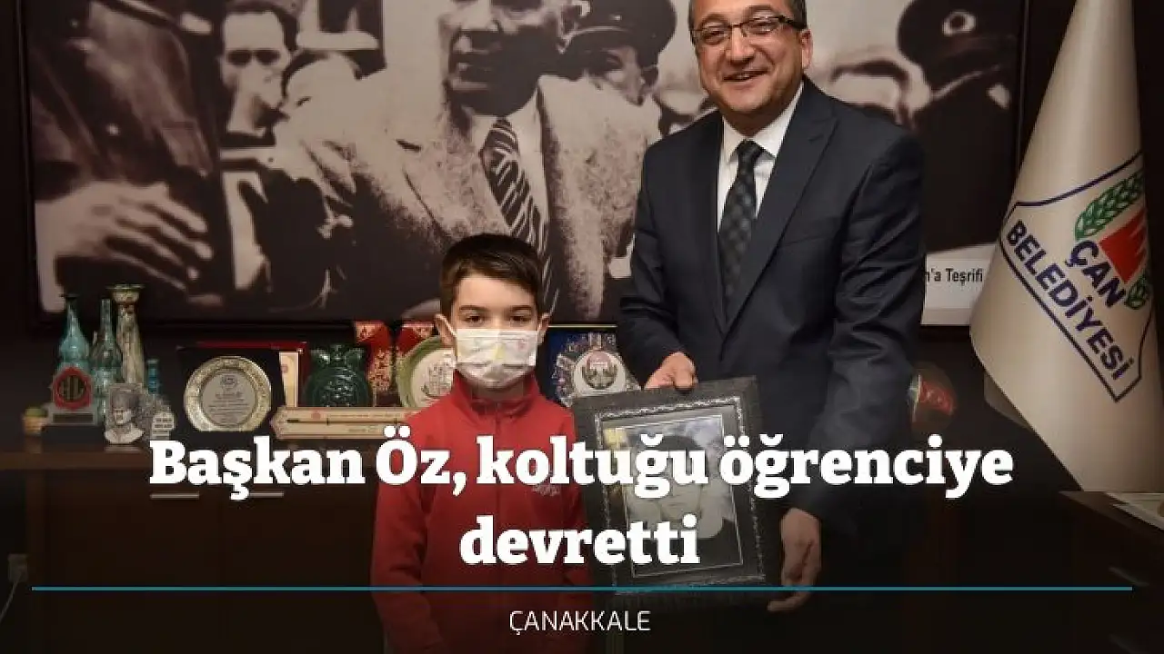 Çanakkale'nin Çan ilçesinde 23 Nisan'da Başkan Öz'ün koltuğuna oturan Atatürk ilkokulu öğrencisi Hamza Yaşar'ın ilk icraatı birim müdürlerini çağırarak okulun eksik olan malzemelerini tamamlamak oldu.
