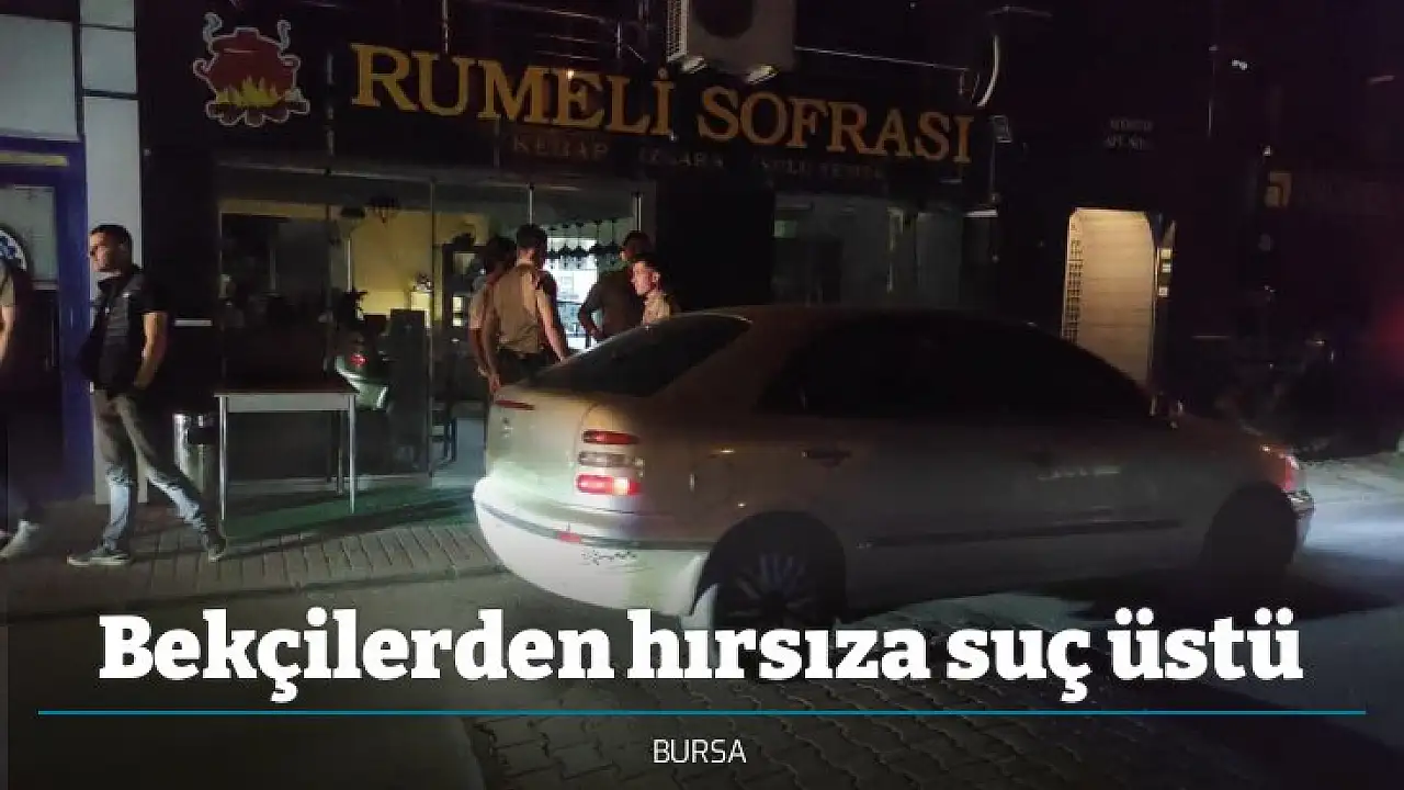 Bursa'da bir lokantaya girerek kasasındaki paraları çalan hırsızı bekçiler suç üstü yakaladı.