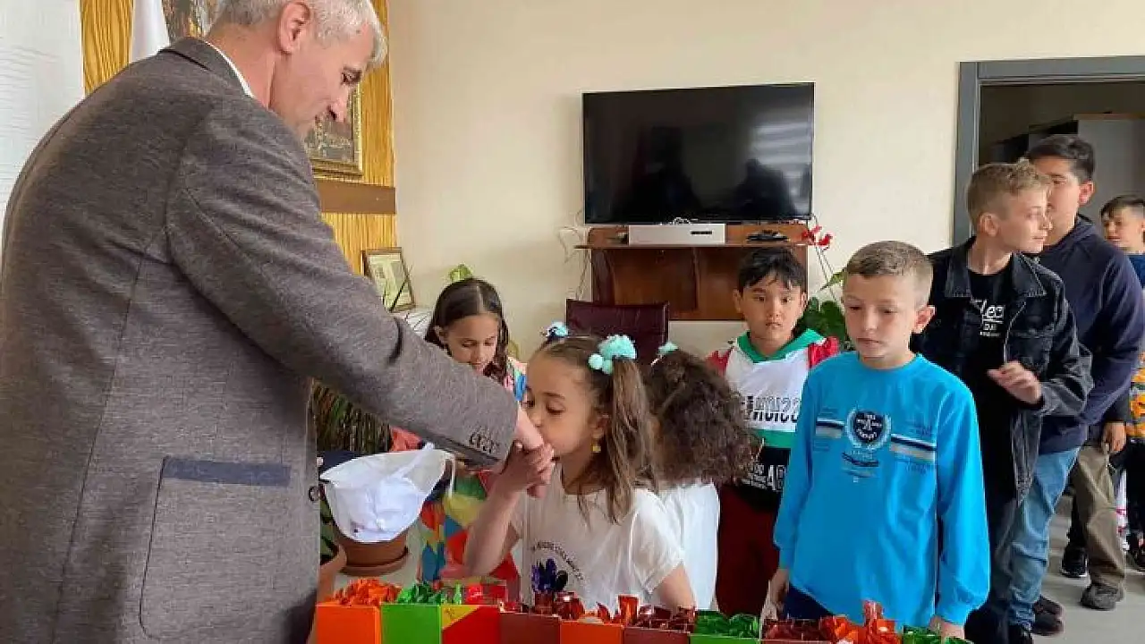 Çanakkale'nin Çan ilçesine bağlı Terzialan Belde Belediye Başkanı Tuncay Göymen, çocuklarla bayramlaştı.