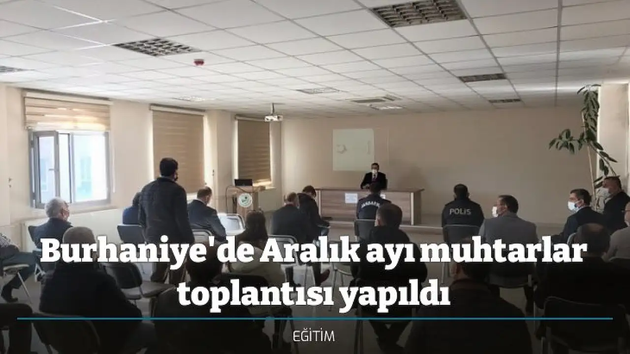 Burhaniye ilçesinde, Kaymakam İlyas Memiş başkanlığında mahalle muhtarlarının katılımıyla Aralık ayı muhtarlar toplantısı gerçekleştirildi. Kaymakamlık Salonunda toplantıya 38 mahalle muhtarı katıldı.