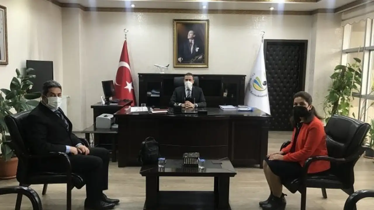 Burhaniye'de, Vergi Haftası sebebiyle, Vergi Dairesi Müdürü Fadime Yurtçu ve Gelir Uzmanı Murat Kaplan'ı makamında kabul etti.