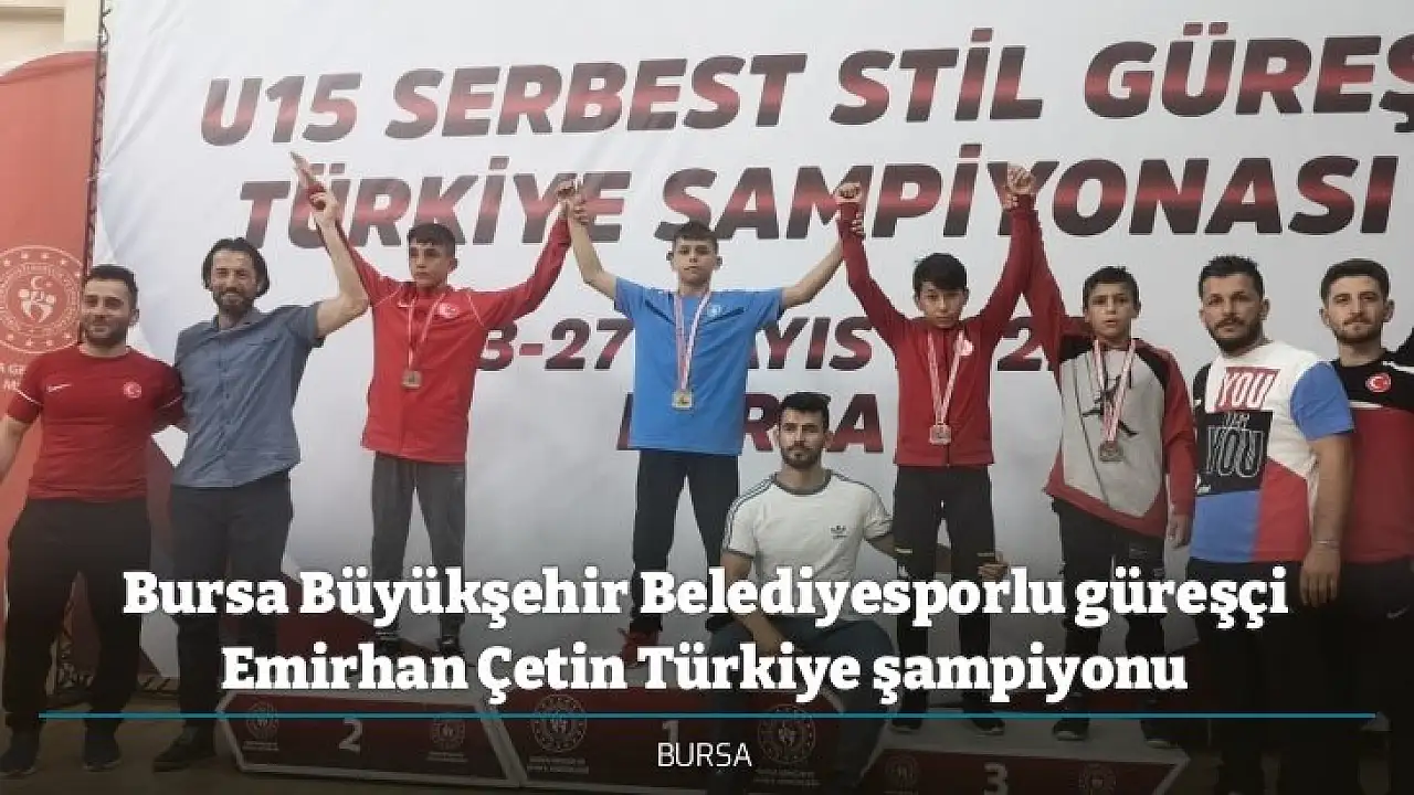 Bursa Büyükşehir Belediyesi'nin destekleri ile düzenlenen U15 Serbest Güreş Türkiye Şampiyonası'nda heyecan tamamlanırken, organizasyonda Bursa Büyükşehir Belediyespor Kulübü'nden Emirhan Çetin şampiyon olarak önemli bir başarıya imza attı.