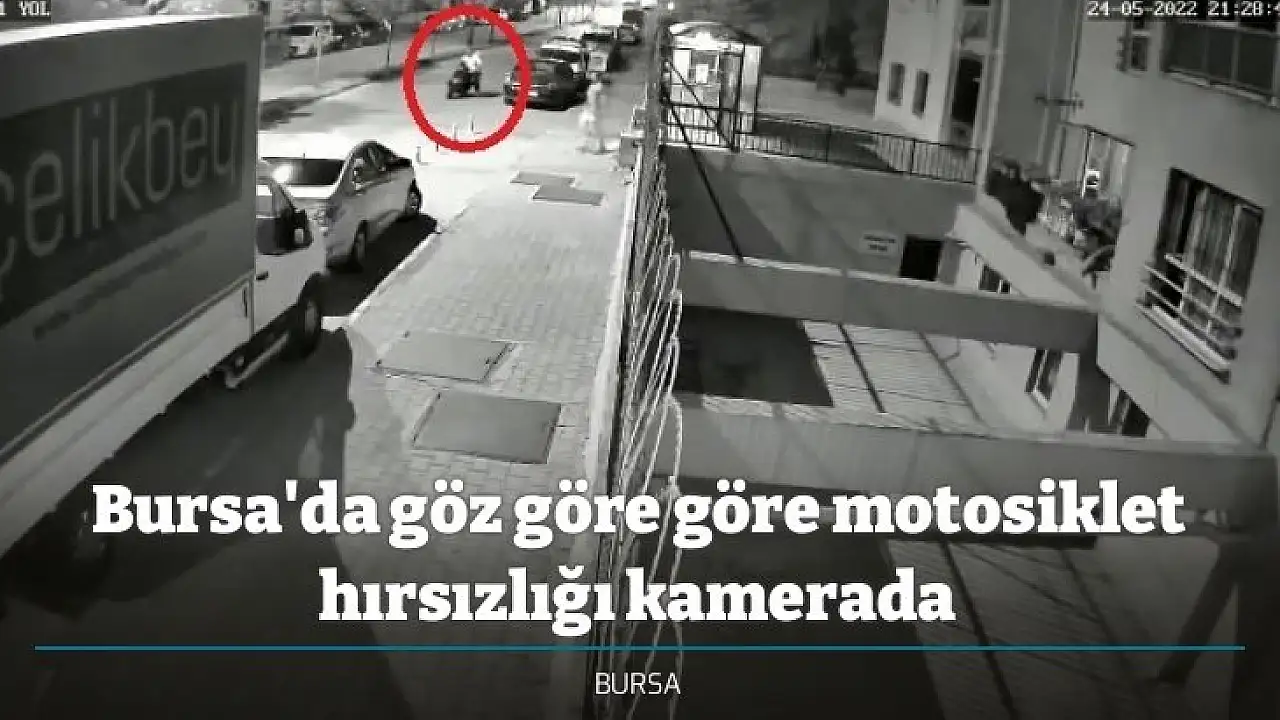 Olay, merkez Osmangazi ilçesi Doğanbey Mahallesi’nde meydana geldi. Sitenin giriş kapısına bırakılan motosikleti gören hırsız bir süre çevreyi izledikten sonra harekete geçti. Kaldırımda yürüyen kadınlara aldırış etmeden sakin tavırlarla hareket eden hırsız kısa sürede motosikleti çalarak gözden kayboldu. Hırsız, siteye giriş çıkış yapanlara rağmen sürükleyerek çaldığı motosikletle kayıplara karıştı. Motosikletin çalınma anları sitenin güvenlik kameraları tarafından 3 farklı açıdan anbean kaydedildi.