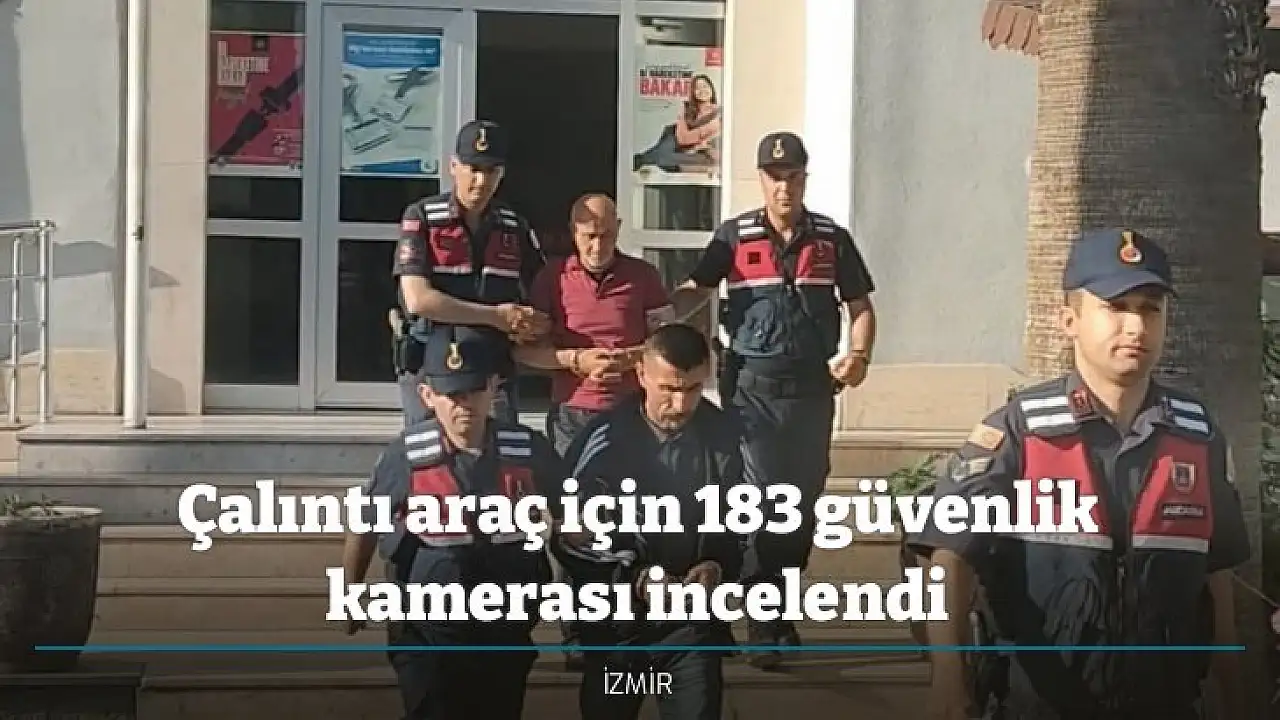 İzmir'in Menemen ilçesinde çalınan araç, İlçe Jandarma Komutanlığı ve Jandarma Dedektifleri (JASAT) ekiplerince 9 gün boyunca yaklaşık 183 güvenlik kamerası incelenerek bulundu. Yakalanan 2 kişi tutuklanırken, araç sahibine teslim edildi.