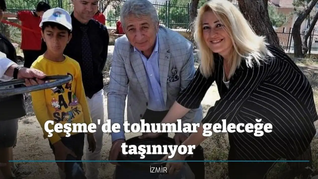Çeşme Eğitiminde İzleme Geliştirme ve İnovasyon (ÇİZGİ) projesi çerçevesinde, Mehmet Akpınar Ortaokulu'nda tohumlar, 10 yıl sonra çıkarılmak üzere toprağa gömüldü.