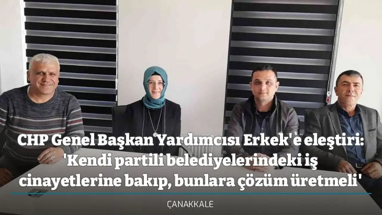 - CHP Genel Başkan Yardımcısı Erkek'e eleştiri: 'Kendi partili belediyelerindeki iş cinayetlerine bakıp, bunlara çözüm üretmeli'