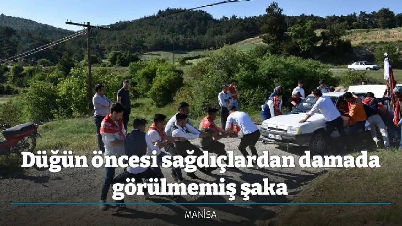 Manisa'nın Gördes ilçesine bağlı Kıran Mahallesi'nde sağdıçlar düğün öncesi damada görülmemiş bir şaka hazırladı. İple araba çeken damat, daha sonra baklava, ardından da acı biber yedi. Bir de üstüne suyla ıslatılan damat Mehmet Arslantaş, Yandım. Düğün zor iş diyerek arkadaşlarına sitem etti.