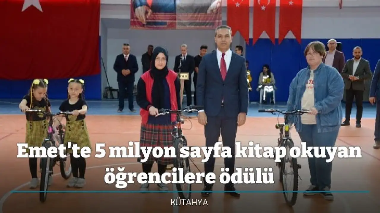 Kütahya'nın Emet ilçesinde Kaymakamlık ve İlçe Milli Eğitim Müdürlüğü işbirliği ile başlatılan kitap okuma kampanyasında dereceye giren öğrencilere bisiklet hediye edildi.