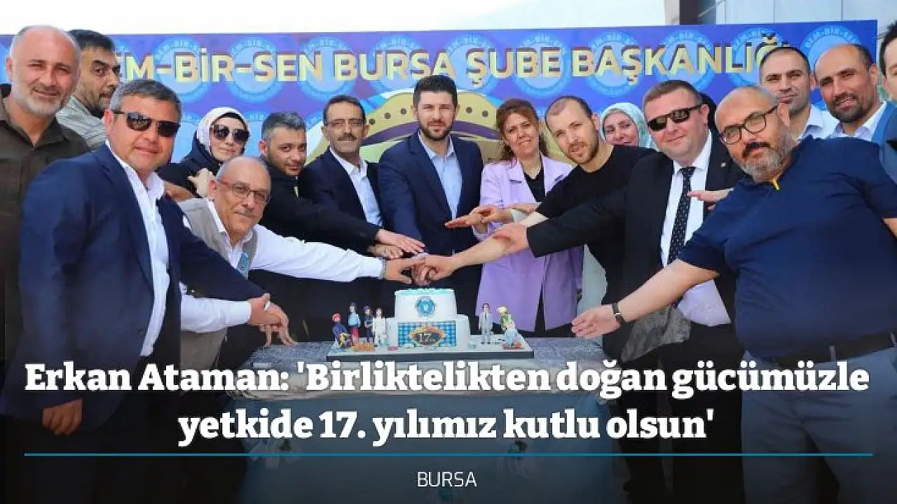 Bem-Bir-Sen Bursa Şube Başkanlığı, Bem Bir Sen'in yetkide 17. yılını kutlamak için bir araya geldi. Bursa Şube Başkanı Erkan Ataman, Dünyanın içinde bulunduğu kötü dönemde dahi bu yılı kazanımlar elde ederek tamamladık. Temmuz ayında yemek ücretlerine yapılacak zam ve maaş iyileştirmeleriyle inşallah kazanımlarımızı sürdüreceğiz. Desteğiniz, mücadeleniz ve emeğiniz için çok teşekkür ediyorum' ifadelerini kullandı.