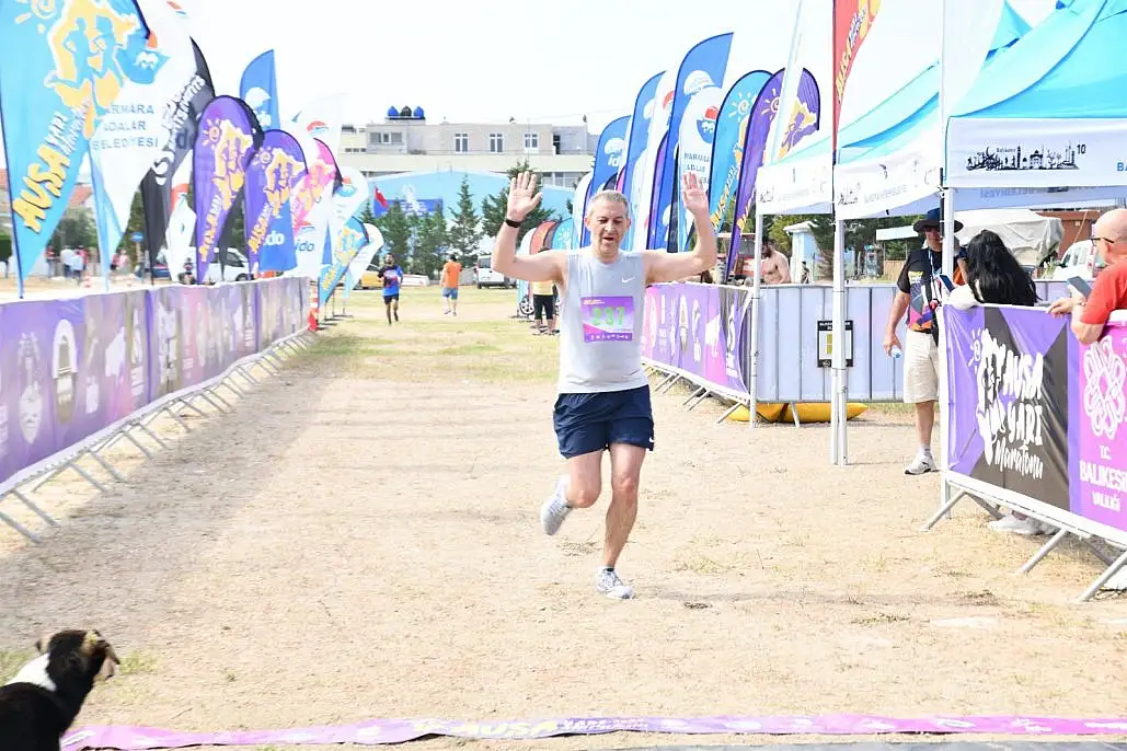 Balıkesir Avşa Yarı Maratonu'nda 300'den fazla yerli ve yabancı sporcu 'Temiz Denize Doğru Koşuyoruz' sloganıyla Marmara Denizi'ne koşarak sıfır atık konusuna dikkat çekti.