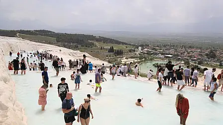 Ramazan Bayramı tatilinde yerli ve yabancı turistlerin tercih ettiği önemli noktalardan biri de Pamukkale oldu.