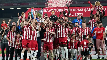 60. Türkiye Kupası`nı Kayserispor`u uzatmalarda 3-2 mağlup ederek elde eden Sivasspor düzenlenen seremonide Türkiye Futbol Federasyonu Başkan Vekili Ali Düşmez`den kupasını aldı.