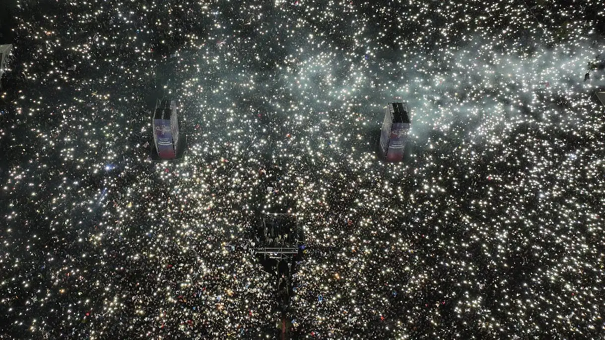 Trabzonspor'un Yenikapı'da binlerce taraftarın katılımıyla gerçekleştirdiği şampiyonluk kutlamasının dron görüntüleri görsel şölen oluşturdu.