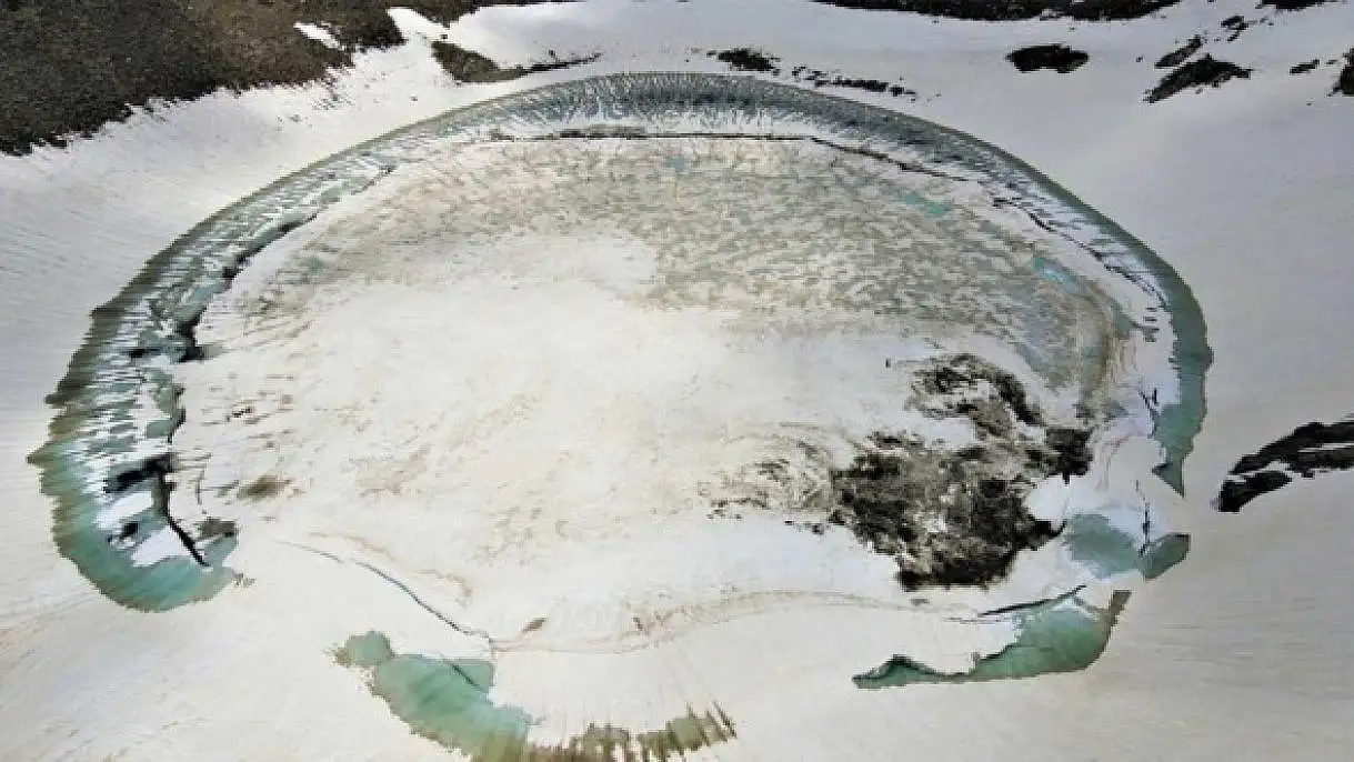 Bursa`da baharın gelmesiyle birlikte erimeye başlayan Uludağ`ın zirvesindeki buzul göllerinin görüntüsü görsel şölene dönüşüyor.