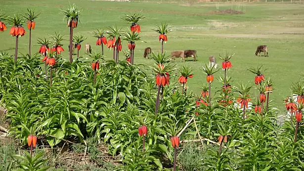 Hakkari'nin Yüksekova ilçesinde çiçek açan ters laleler, görenleri kendine hayran bırakıyor.