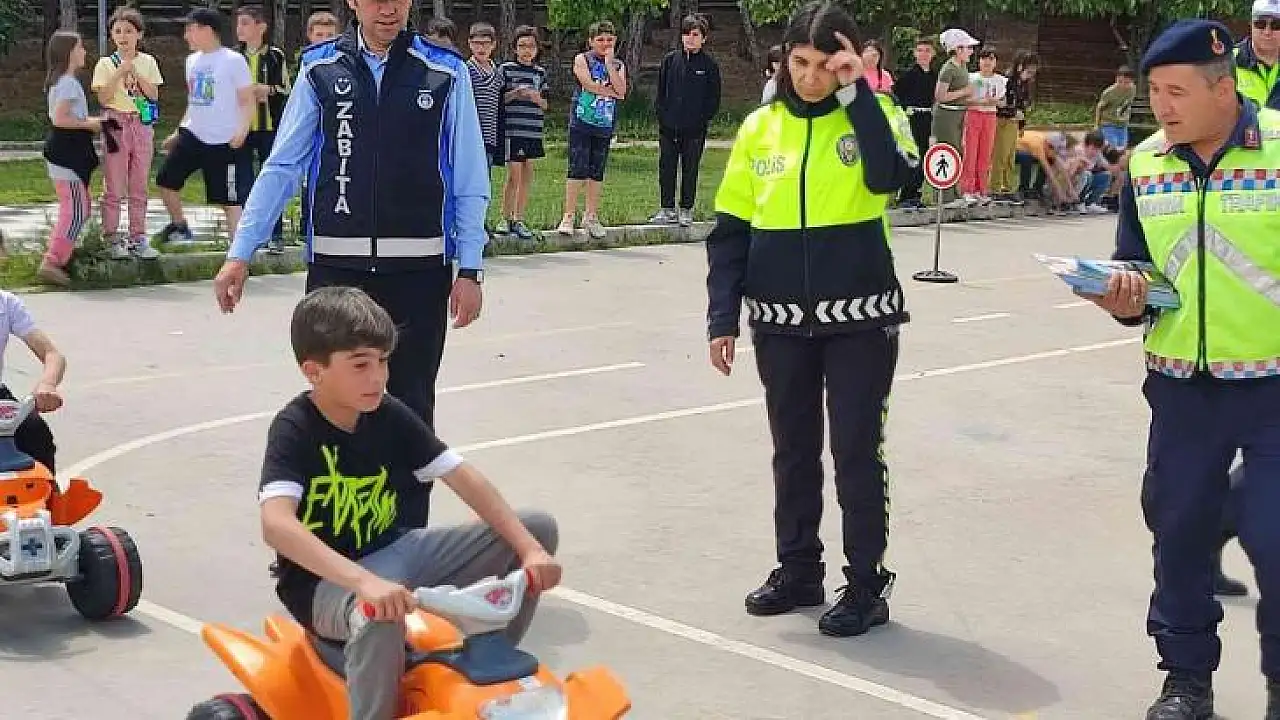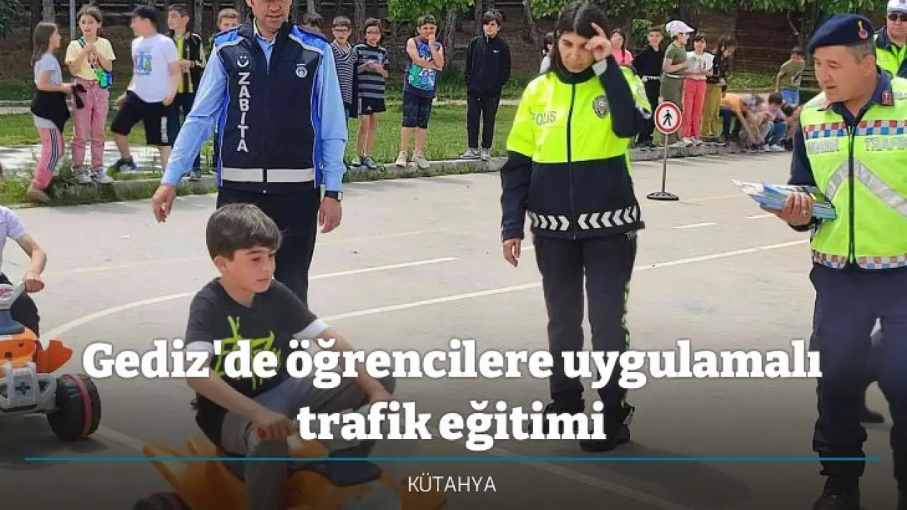 Kütahya'nın Gediz İlçesinde Trafik Haftası etkinlikleri çerçevesinde ilkokulu öğrencilerine uygulamalı trafik eğitimi verildi.