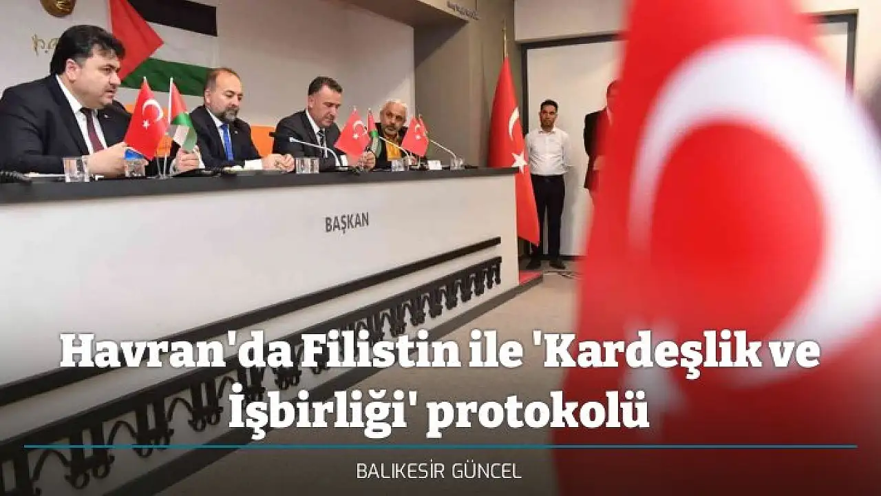 Balıkesir'in Havran ilçesinde Filistin Salfeet Belediyesi ile Havran Belediyesi arasında 'Kardeşlik ve İşbirliği Protokolü' Büyükşehir Belediye Başkan Vekili Mehmet Birol Şahin, Havran Belediye Başkanı Emin Ersoy ve Salfeet Belediye Başkanı Abdul Karim Zubaidi tarafından törenle imzalandı.