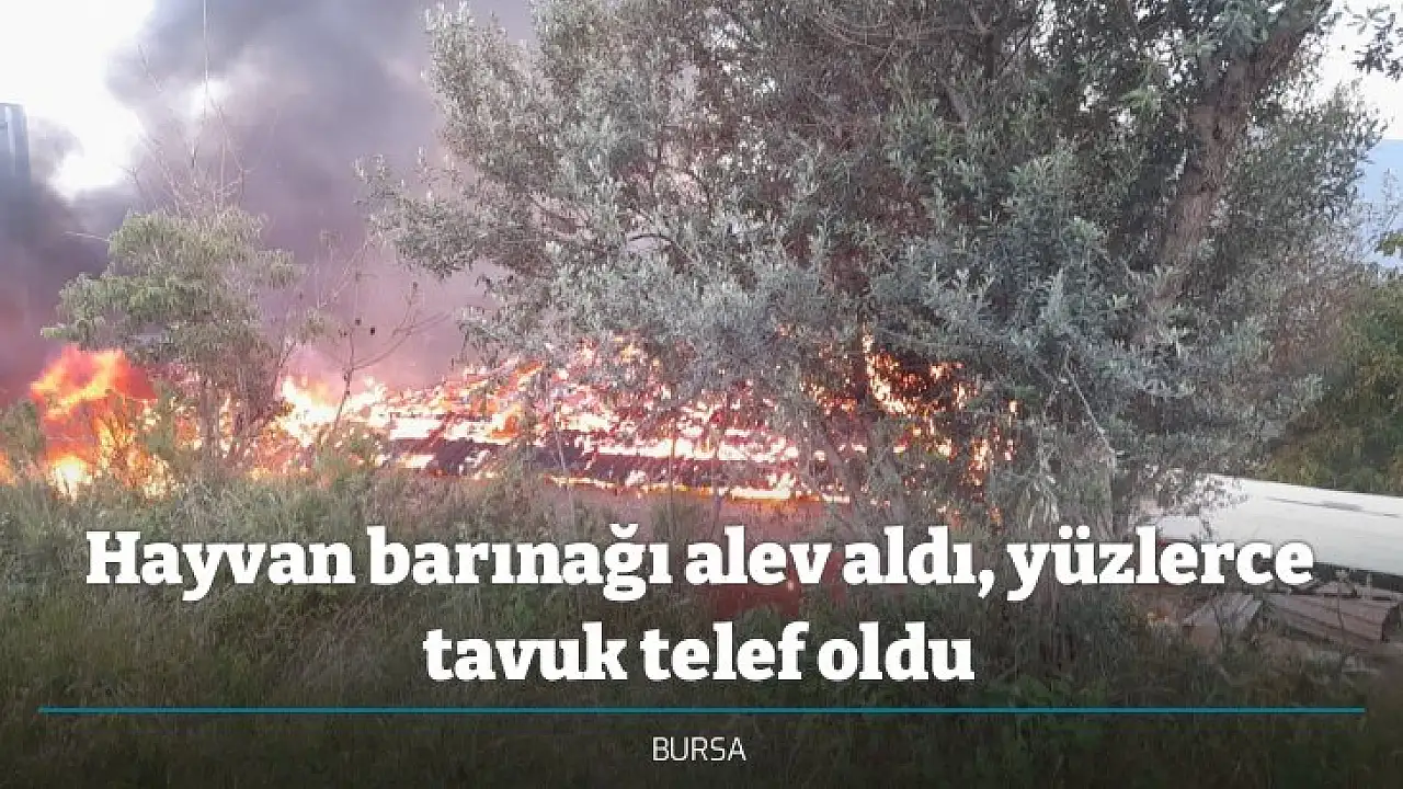 Bursa'da hayvan barınağında çıkan yangında yaklaşık 100 tavuk ile çok sayıda civciv yanarak telef oldu.