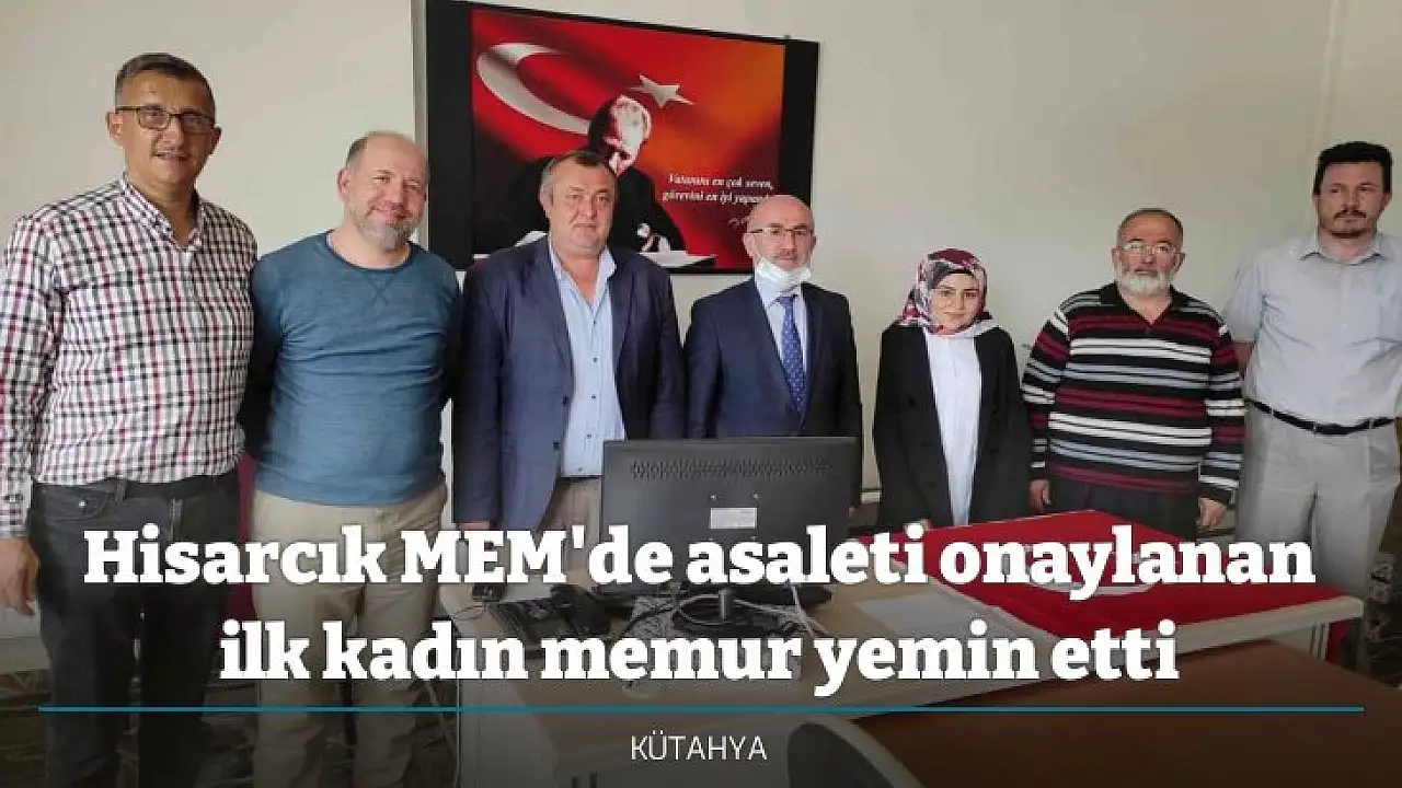 Hisarcık İlçe Milli Eğitim Müdürlüğünde iki yıl önce Veri Hazırlama ve Kontrol İşletmeni (V.H.K.İ. ) olarak göreve başlayan ve adaylığı kaldırılan ilk kadın memur Umahan Ayyıldız'a törenle yemin ettirildi.