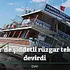İzmir’de gece saatlerinde başlayan şiddetli rüzgar, Balçova ilçesi İnciraltı sahilinde turistik tekneyi devirdi.