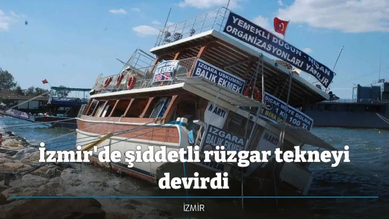 İzmir'de gece saatlerinde başlayan şiddetli rüzgar, Balçova ilçesi İnciraltı sahilinde turistik tekneyi devirdi.