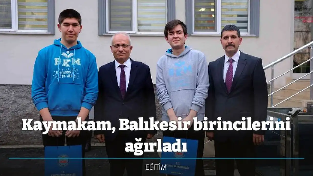 BİGEP kapsamında yapılan ve 11 ile 12. sınıf öğrencilerinin katıldığı Balıkesir il geneli deneme sınavında il birincisi olan 12. sınıf öğrencisi Efe Arda Önal ile 11. sınıf öğrencisi Mehmet Sakin il birincisi oldu. Başarılı öğrenciler Karesi Kaymakamı Metin Arslanbaş’ı ziyaret etti. BKM Okulunu temsilen ziyarette bulunan Anadolu Lisesi ve Fen Lisesi Müdürü Günay Altın, Kaymakam Arslanbaş’a öğrencilerin başarısı hakkında bilgi verdi. Kaymakam Arslanbaş, "Marifet, iltifata tabidir" diyerek öğrencileri tebrik etti. Karesi İlçe Milli Eğitim Müdürü Sami Günnü’nün de hazır bulunduğu görüşmede Kaymakam Arslanbaş, öğrencilere ödüllerini verdi.