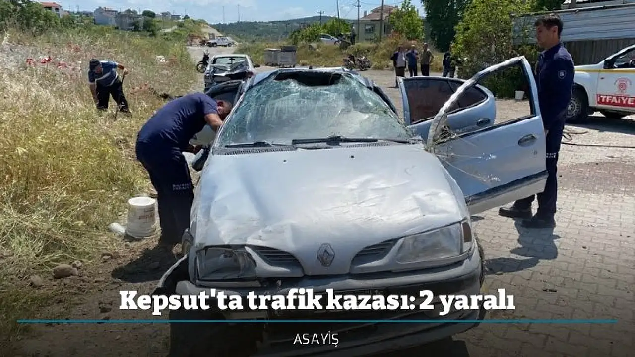 Kepsut- Dursunbey karayolunun 1. Km. sinde seyir halindeki 10 R 7327 plakalı araç sürücüsü direksiyon hakimiyetini kaybedince takla atmaya başladı. Takla atan araç önünde seyir halinde bulunan 18 AB 930 plakalı araca çarparak, tavan üzerine yol kenarına yattı. 10 R 7327 plakalı araçtan sürücü İ. Y ve eşi H.Y. yaralı olarak, kendi imkanları ile araçtan çıktılar. Kazaya müdahale eden İtfaiye ve 112 ekipleri yaralıları 112 Ambulansı ile hastaneye sevk ettiler. Kaza ile ilgili soruşturmanın devam ettiği öğrenildi.