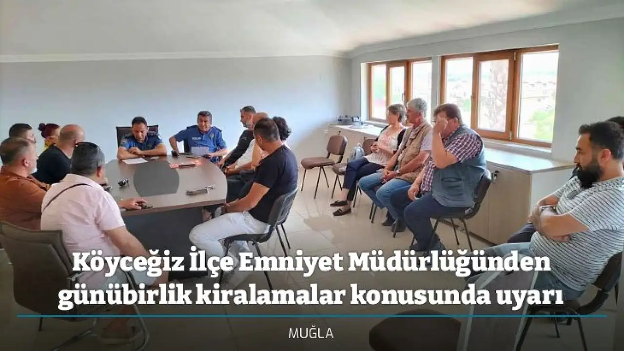 Muğla'nın Köyceğiz İlçe Emniyet Müdürlüğü personelleri tarafından emlakçı ve muhtarlara günübirlik ev kiralamaları konusunda bilgilendirme toplantısı yapıldı.
