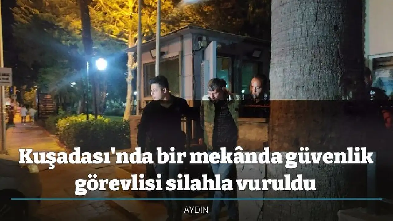 Aydın'ın Kuşadası ilçesinde bir meknda alkol alan iki arkadaşın arasında tartışma çıkması üzerine güvenlik görevlisi, alkollü vatandaşları çıkarmak isterken silahla vuruldu. Şüpheli ekipler tarafından gözaltına alındı.